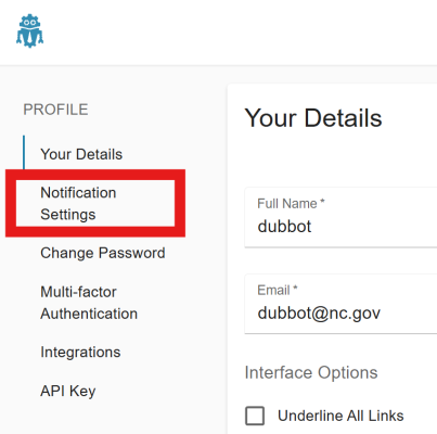 In the navigation panel on the left, select Notification Settings
